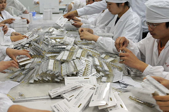 5月20日,江蘇常州方圓制藥有限公司正加緊生產(chǎn)災(zāi)區(qū)急需的抗生素。5月13日至今,該公司已捐贈(zèng)價(jià)值300多萬元的藥品。