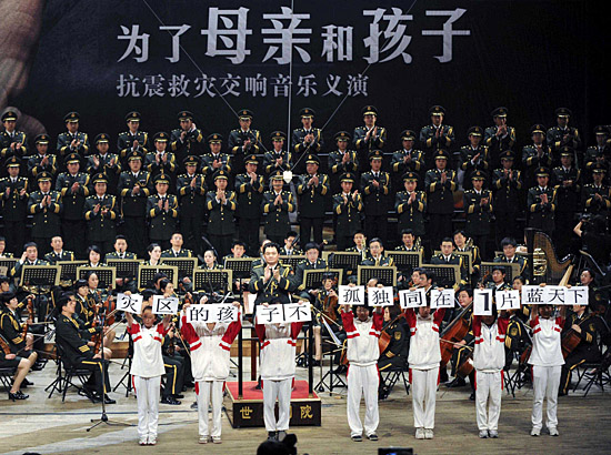 | 5月22日,“為了母親和孩子——抗震救災(zāi)交響音樂義演”在北京世紀(jì)劇院舉行。義演呼吁社會(huì)各界伸出援手,幫助地震災(zāi)區(qū)人民重建家園。新華社記者