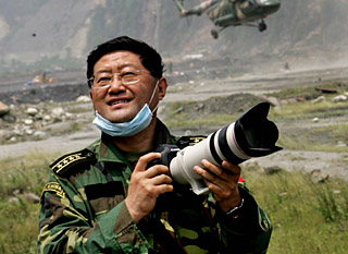 不到10公里的山路,我竟跌跌撞撞走了3個多小時。在當?shù)貎晌恢驹刚邘椭,我終于到達了映秀鎮(zhèn)。如果沒有他們幫我背器材,我還不知道要走多久。 疲憊不堪的我一踏上映秀鎮(zhèn),看到的只是群山中的一片廢墟,漩口中學(xué)倒塌的樓房最為明顯。在廢墟前面的空地上,躺著數(shù)不清的等待救援的傷員,還有救援部隊官兵奔波的身影,緊張的氣氛就像一部戰(zhàn)爭影片的場景。 不拋棄,不放棄!這是中國一場前所未有的生死大營救,前來救援的直升機轟鳴聲在山谷里回蕩,每當直升機一落地,官兵們就冒著彌漫的塵土,抬起擔架向直升機沖去,快速搶運受傷群眾。在空地上等待救援的大批傷員,仰望天空,翹首企盼。 為了更多地挽救地震中受傷災(zāi)民的生命,成都軍區(qū)每天派往映秀的直升機多達幾十個架次,使大批的傷員得到及時治療。直升機還為徒步進入的先期部隊送來了食品和淡水。 在映秀鎮(zhèn)的廢墟旁,我見到了濟南軍區(qū)“鐵軍”127師師長楊劍,得知濟南軍區(qū)已有4萬多名將士開赴災(zāi)區(qū),他親自率領(lǐng)著800名“鐵軍先遣隊”連夜徒步從都江堰出發(fā),急行軍來到受災(zāi)嚴重的映秀鎮(zhèn),50多公里山路他們走了9個小時。 在映秀鎮(zhèn),遭受損失最嚴重的要屬兩所學(xué)校,一所是映秀中心小學(xué),另一所是漩口中學(xué),因為地震時學(xué)生們都在教室里上課,絕大多數(shù)學(xué)生沒來得及跑出來。 我穿過小山一樣的瓦礫,來到位于鎮(zhèn)子里面的映秀中心小學(xué)。這里靜得出奇,校舍全部倒塌,只有飄著五星紅旗的旗桿沒有倒,孤獨地立在廢墟中,空曠的操場上擺滿了遇難學(xué)生的遺體。一位老鄉(xiāng)告訴我,當時有300多名孩子在這里上課,全被壓在了下面。 武警成都支隊政委李丕金,是一個令我敬佩的人。他的家鄉(xiāng)北川受災(zāi)嚴重,失去了4名親人,還有6人沒有音訊,可是他強忍悲痛依然帶領(lǐng)部隊官兵奮戰(zhàn)在抗震救災(zāi)第一線,從12日到16日的4天三夜,他指揮部隊搶救出600多名受災(zāi)群眾。他身先士卒,凡是艱難險重的任務(wù)他都沖鋒在前。為防止災(zāi)區(qū)疫情發(fā)生,16日,部隊接到搬運和掩埋遇難者遺體的任務(wù),李政委擔心年十八九歲的年輕戰(zhàn)士有心理障礙,他就主動去抬第一具尸體,并進行耐心講解,打消了官兵們心中的顧慮?粗前炯t的雙眼,同樣作為軍人的我,心中默默地向他敬了個莊嚴的軍禮! 在震中映秀采訪的兩天兩夜,令我終生難忘:沒吃、沒喝、沒地方住,沒洗過臉,沒刷過牙,沒換過衣襪,也沒刮過胡子,甚至沒有大便,因為兩天都沒吃什么東西。臉上和頭發(fā)里全是土,臉被太陽曬得黝黑,就像回到了原始社會。隨身攜帶的一件雨衣,成了我過夜的惟一裝具。每天晚上半夜發(fā)完稿,雨衣就地一鋪,席地而睡,山里夜間氣溫變化大,總會在后半夜凍醒。 在這里,強烈的余震每天都有很多次,開始還有些在意,后來就習(xí)慣了。記得第一天凌晨2點30左右,一次6.1級的強余震發(fā)生,將躺在地上的我震醒,不遠處的山體滑落的巨石砸落在岷江里,發(fā)出“轟隆隆”的轟鳴聲,在寂靜的夜里,顯得如此驚心。