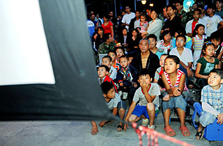 | 6月7日,青川縣受災(zāi)群眾在看電影。新華社記者 謝環(huán)馳